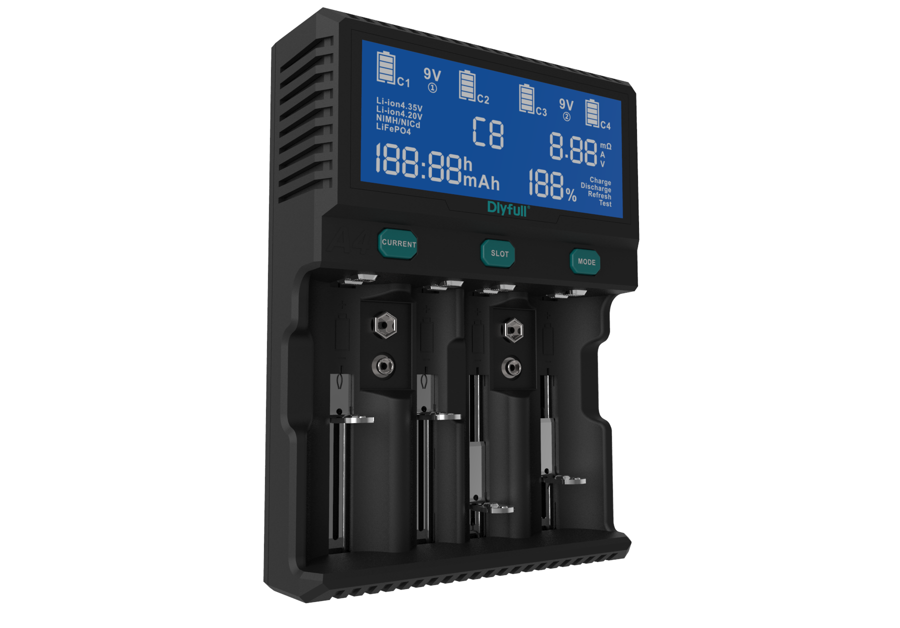 Charge for batteries: 3.2V LiFePO4 & 3.6/3.7/3.85VLi-ion: 10340 / 10440 / 14500 / 14650 / 16340 / 17335 / 17500 / 17670 / 18350 / 18500 / 18650 / 18700 / 20700 / 21700 / 22650 / 22700 / 26500 / 26650 / 32650