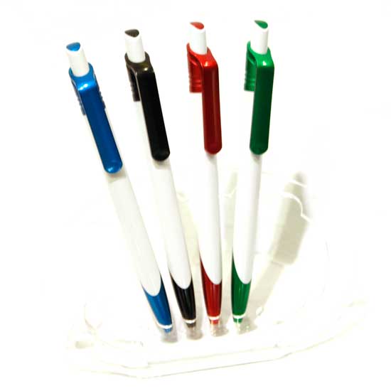 The ball pen features a white barrel highlighted by the colored pocket clip and tip. It boasts a sturdy and durable casing made of ABS material. The top-quality ball pen makes an excellent tool for documenting and record-keeping.