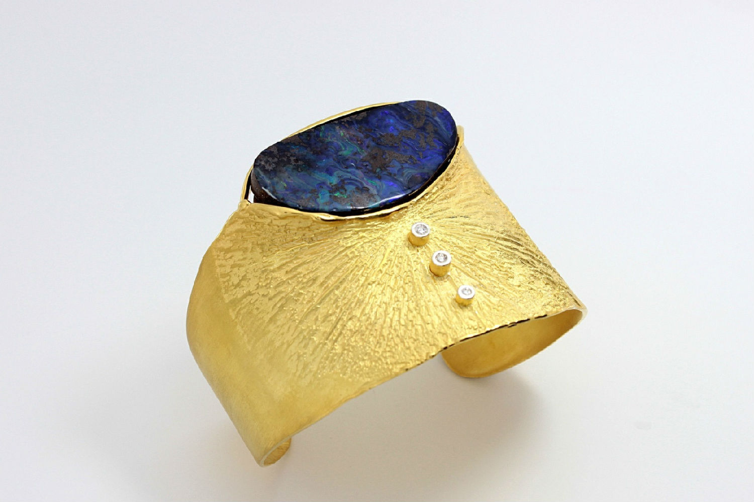 Bracelet made of gilded silver, diamonds and boulder opal.