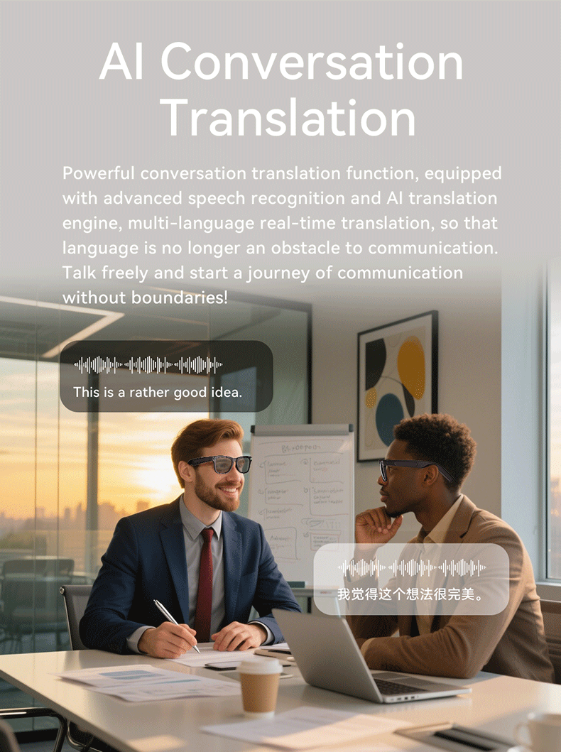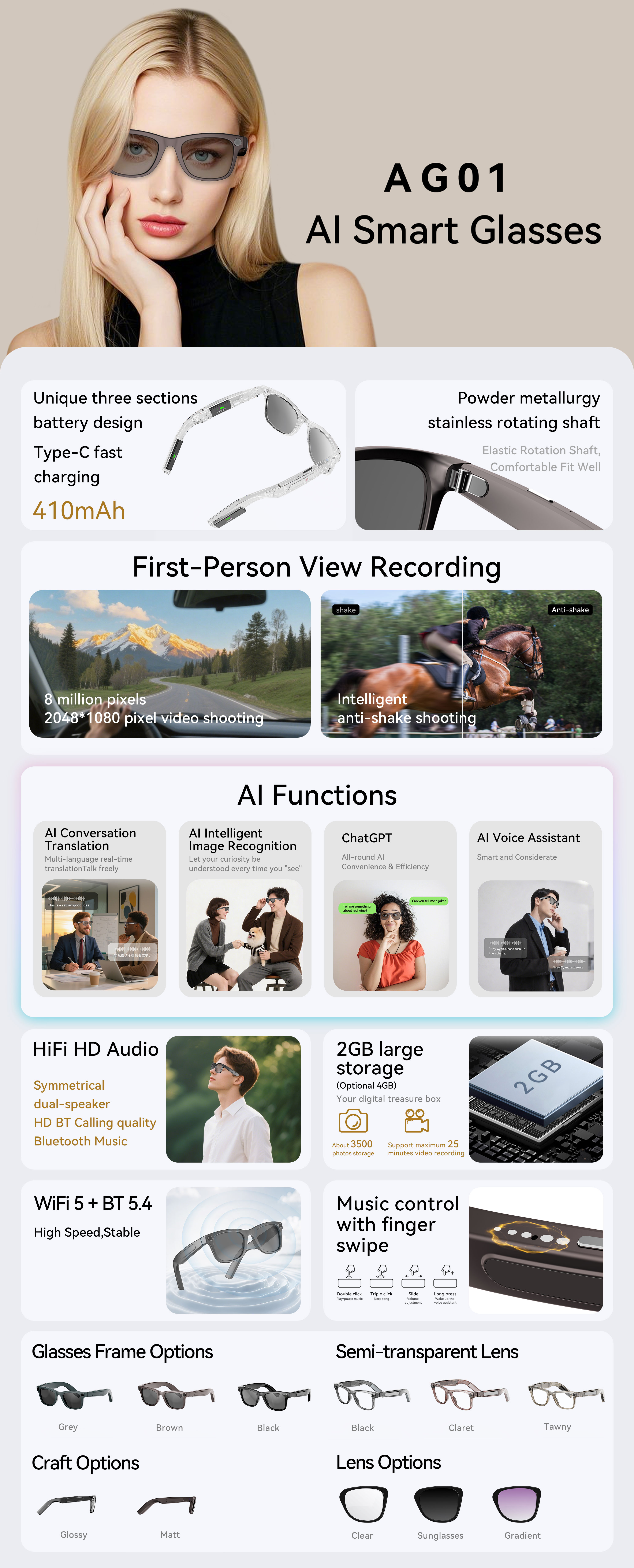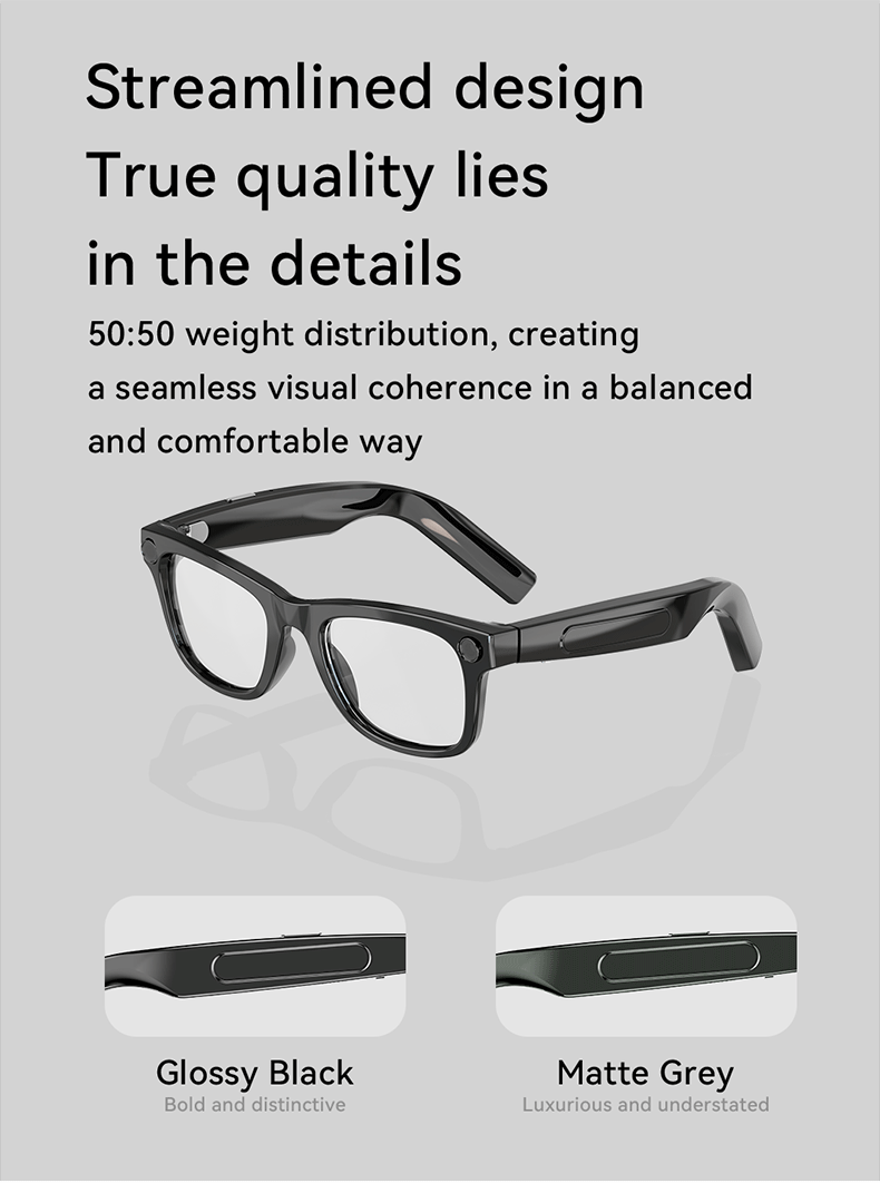 AG01 Enterprise-Grade AI Smart Glasses First-person perspective recording 2K video Real-time translation Hi-Fi audio technology Empowering remote assistance Content creation and B2B collaboration Built-in ChatGPT Modular battery OEM/ODM manufacturer