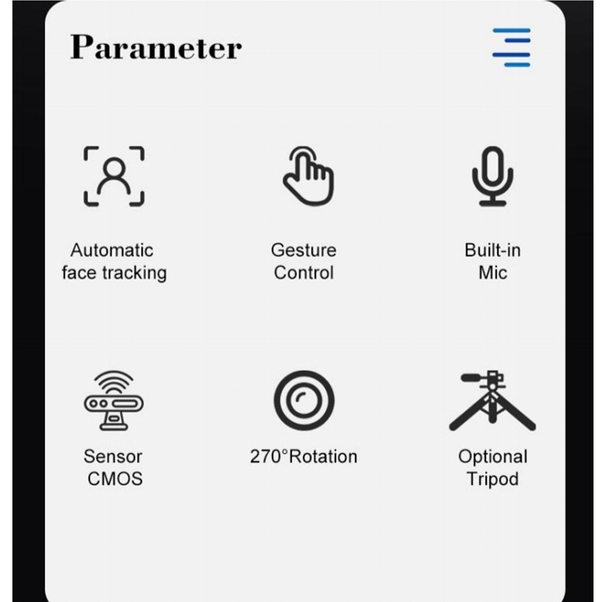 Auto face tracking function: When two or more people appear on the screen, the camera will automatically recognize one person's face and tracking it. If you want to switch another person to follow, you can make corresponding gestures or cover your face with both hands, or turn around, after that, the camera will automatically recognize another person’s face.