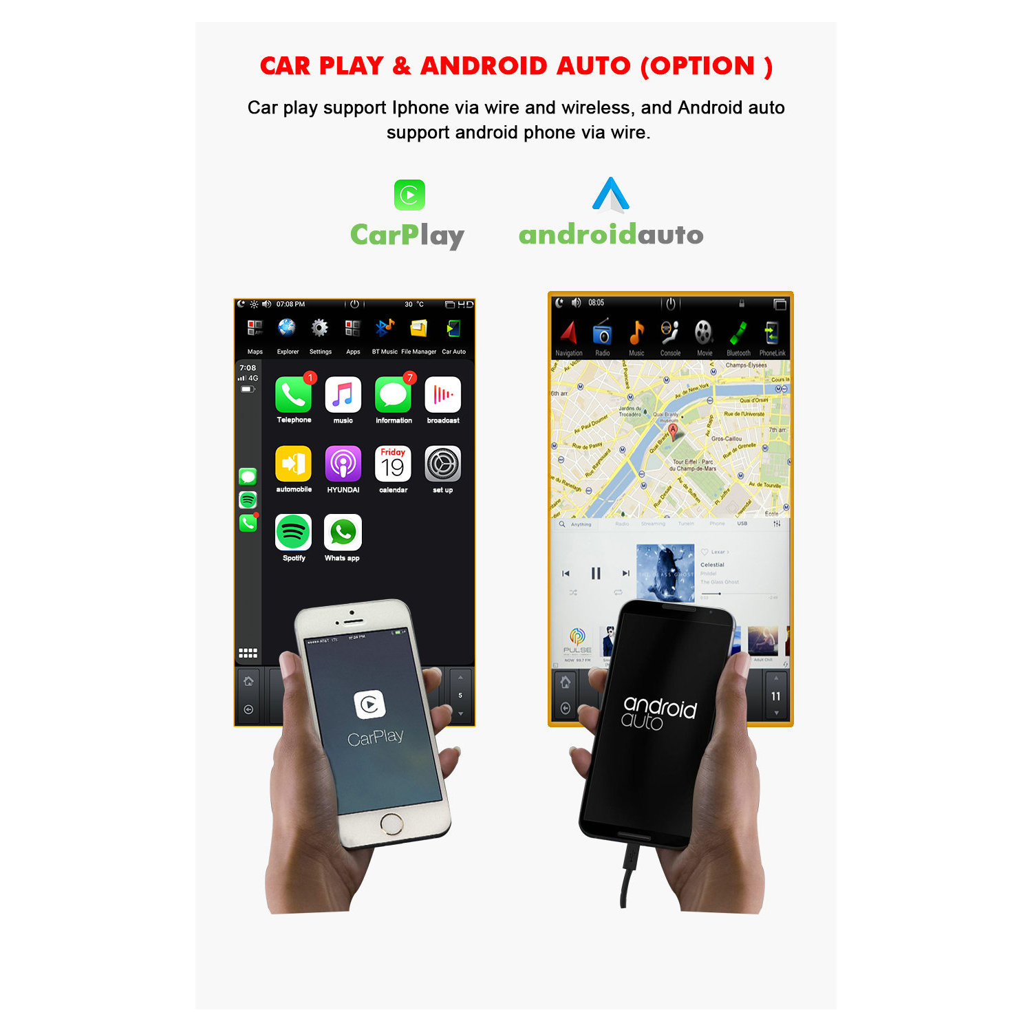 *** Mirror Link, support iphone wireless projection, android phone wire and wireless projection screen.