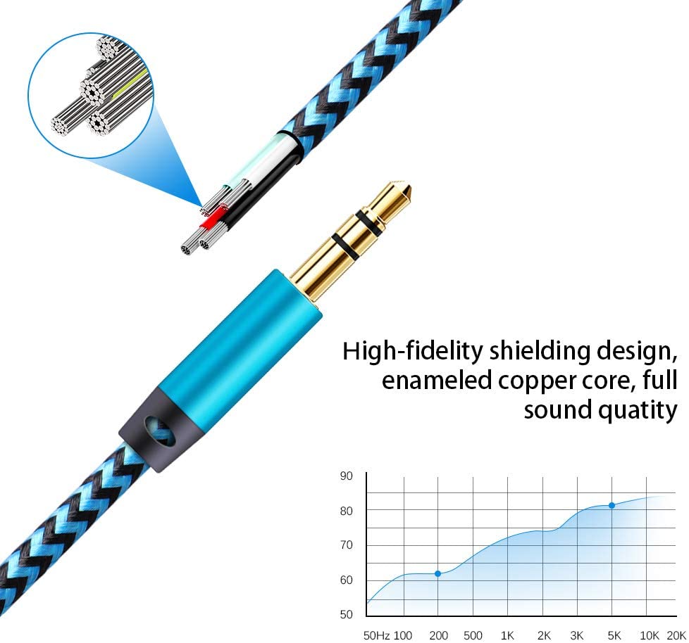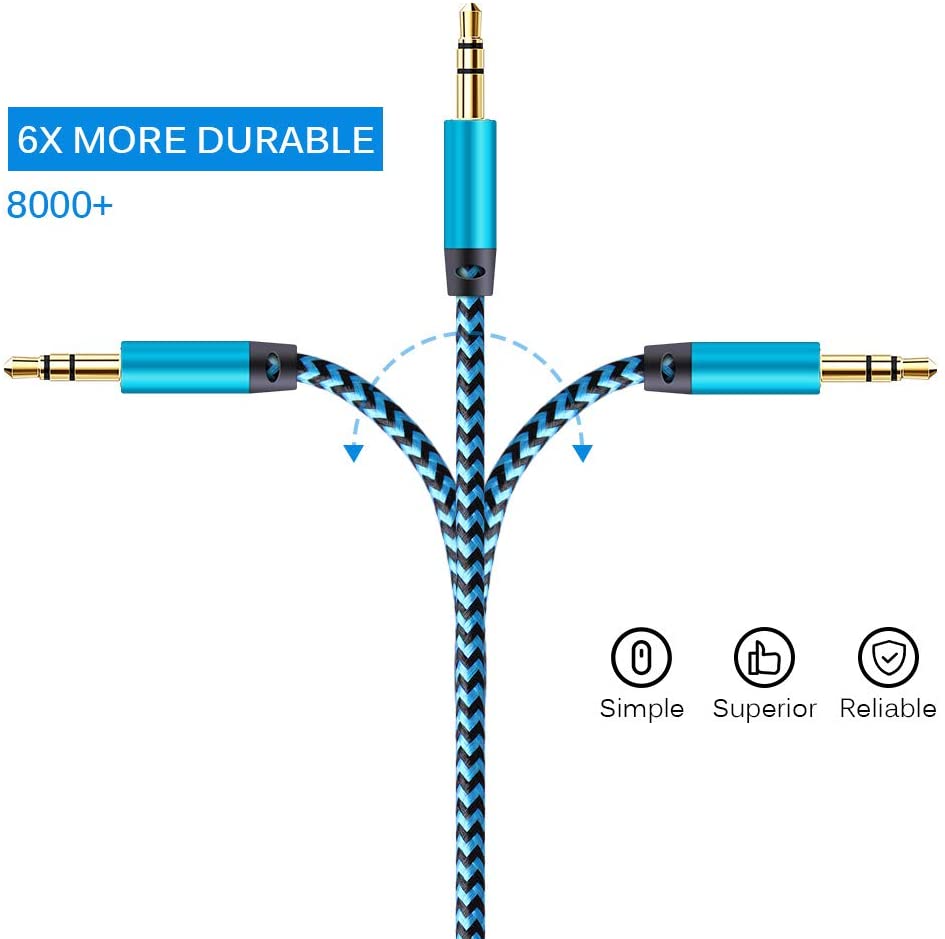 AUX Cable for Car, 3.5mm Auxiliary Audio Cable, Braided Stereo AUX Chords Compatible Headphone Car, iPhone, iPod, iPad, Samsung Galaxy, HTC, LG, Google Pixel, Tablet & More