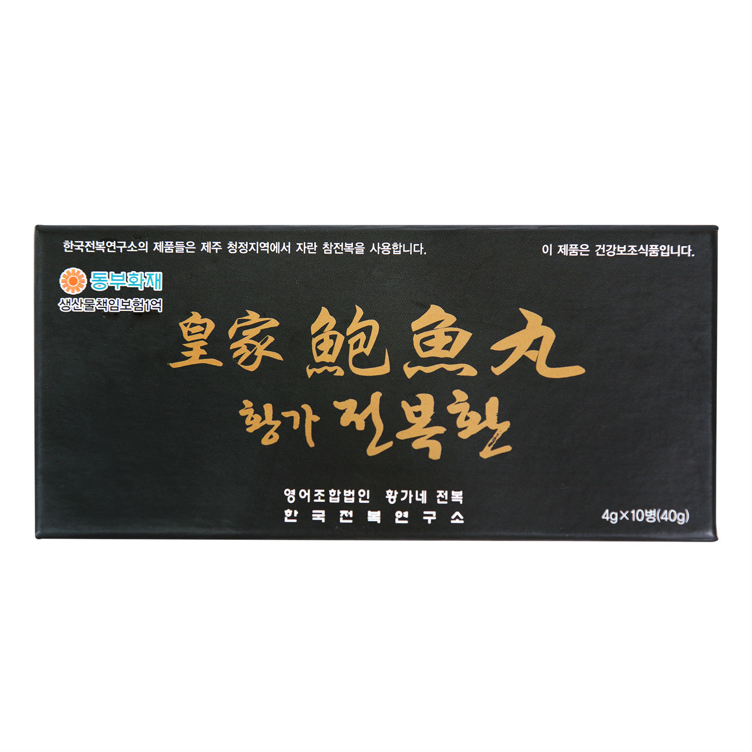 The featured product is pellets that have the nutrition of abalones. It includes lots of taurine in it. Its main ingredients are abalone flesh and viscera. It is really helpful to weak person or surgical patients. The pills are stored inside a jar and are packaged inside rectangular boxes.
