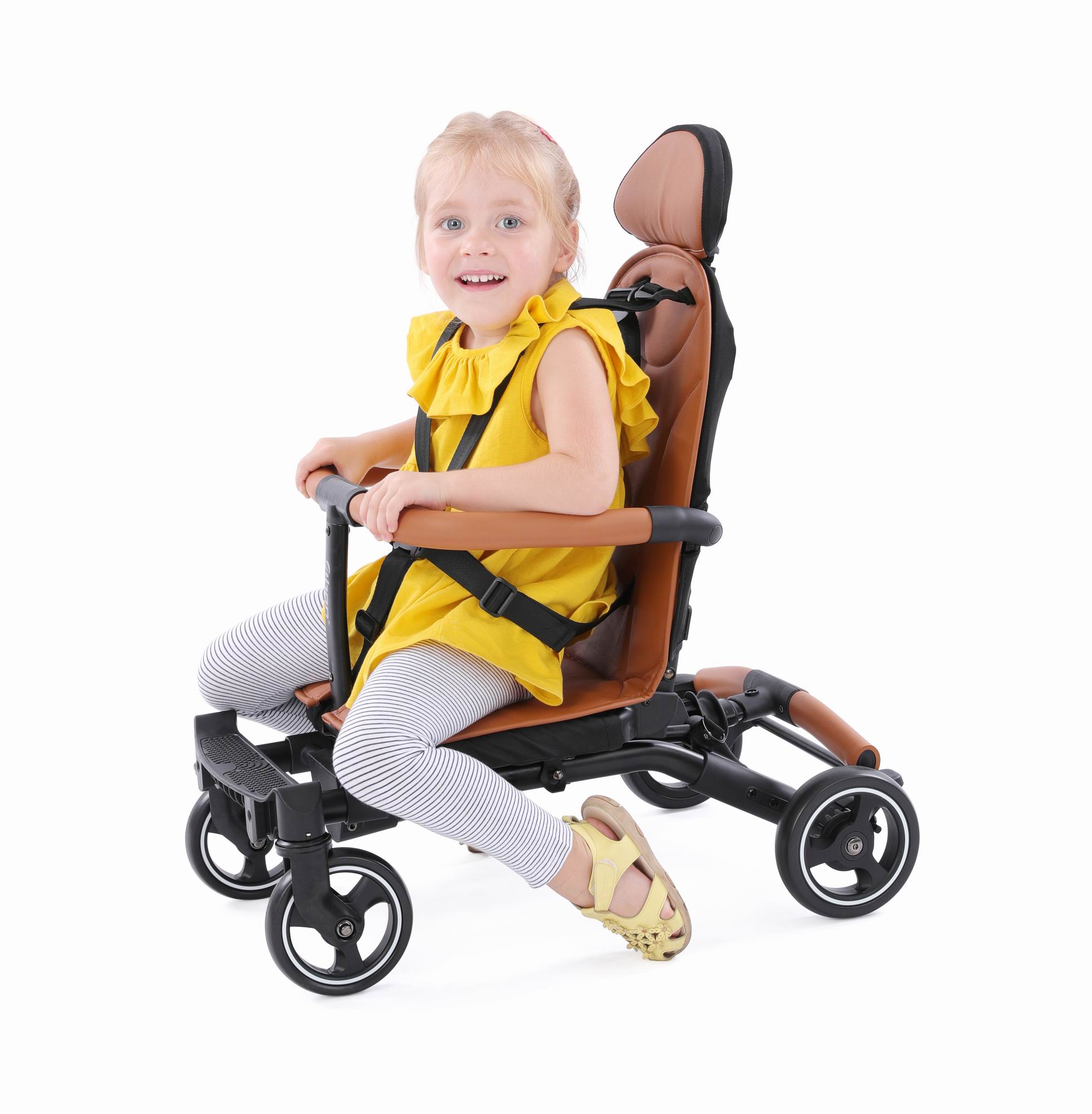 -With a high-density, durable handle & bumper grip (optional closed bumper & T-bar), front wheels with suspension & a one-touch link brake for easy maneuverability.
