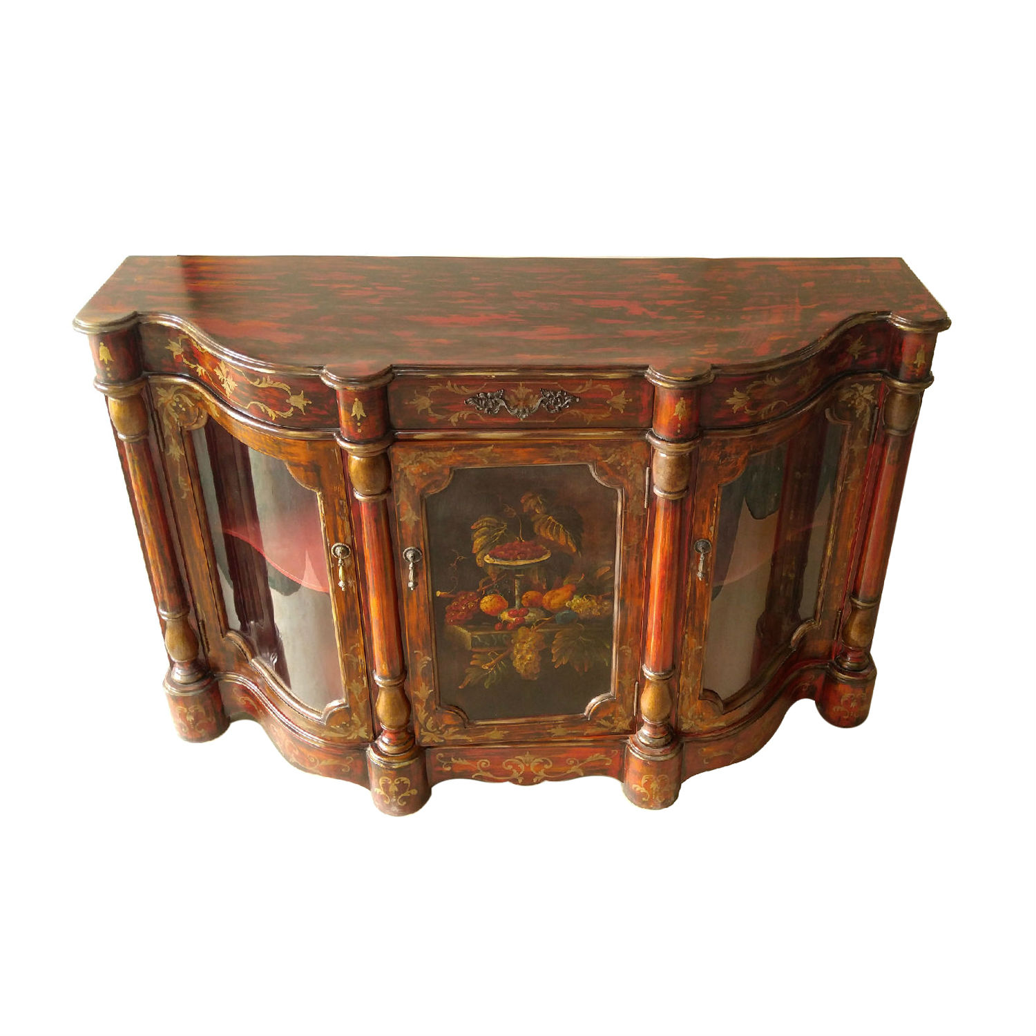 This accent cabinet features a curvy front design fitted with triple glass doors crafted in a vintage style. It opens to reveal sufficient storage space for keeping books, magazines and CDs. This accent cabinet provides immense versatility by offering the ability to convert it into an attractive coffee table.