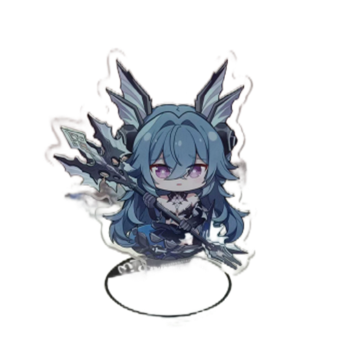 This is an acrylic stand designed with the image of a cute girl with blue hair and animal ears. The details of the character's hair and decorations are exquisite. The overall look is adorable with a hint of a cold and aloof vibe. It comes with a circular base at the bottom, making it easy to place and display.