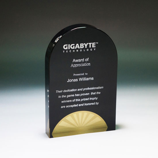 This award plague comes in a black color for a stylish look. The engraved achievements with a white-colored treatment create a nice contrasting effect and are easy to read. This black-colored award with gold-toned details is special and chic.
