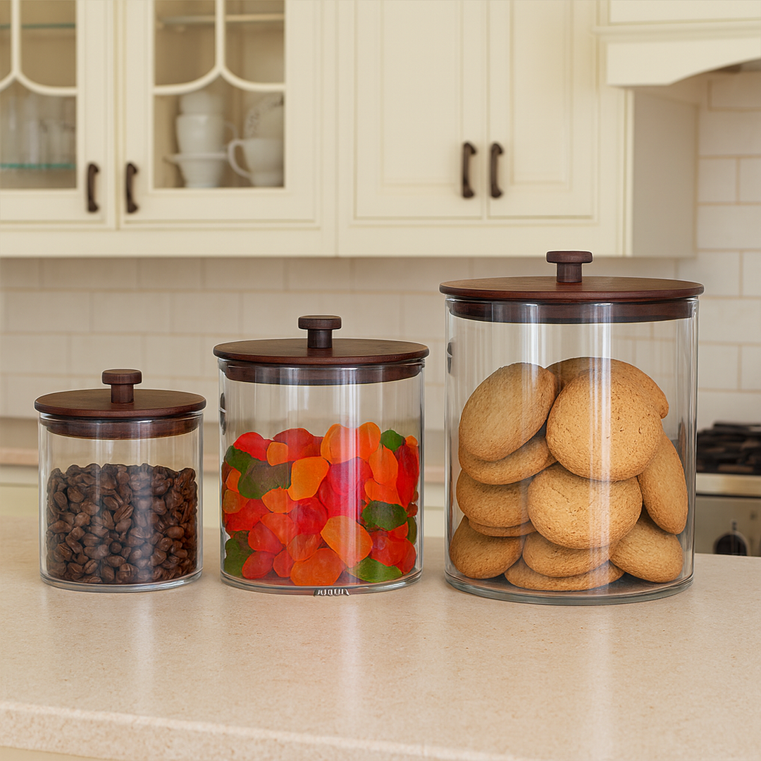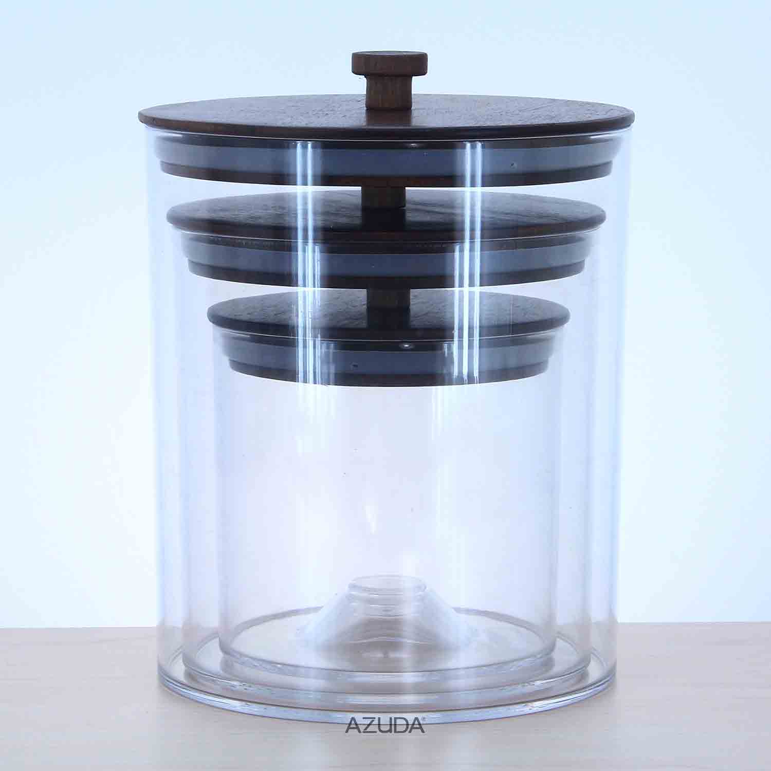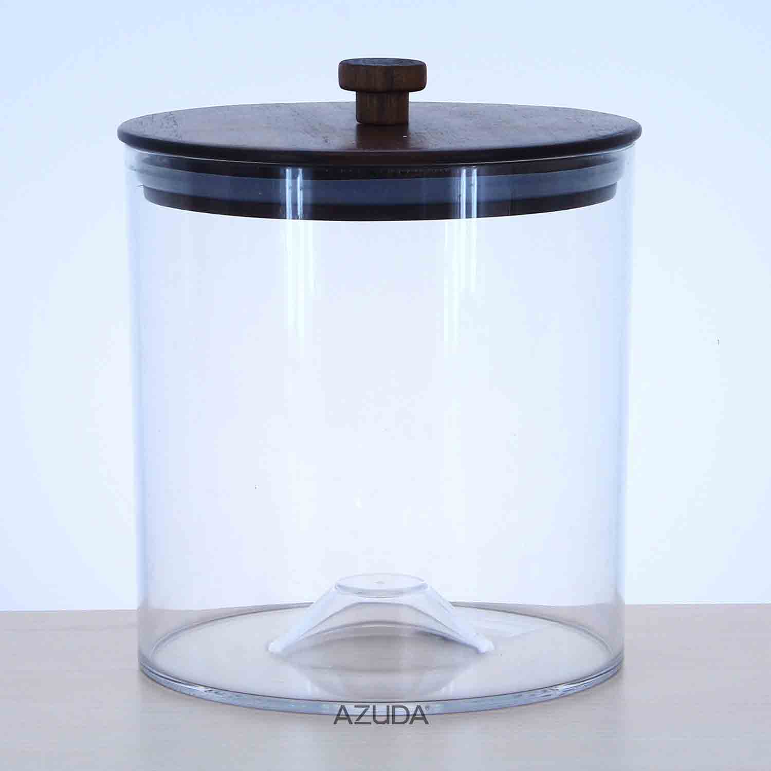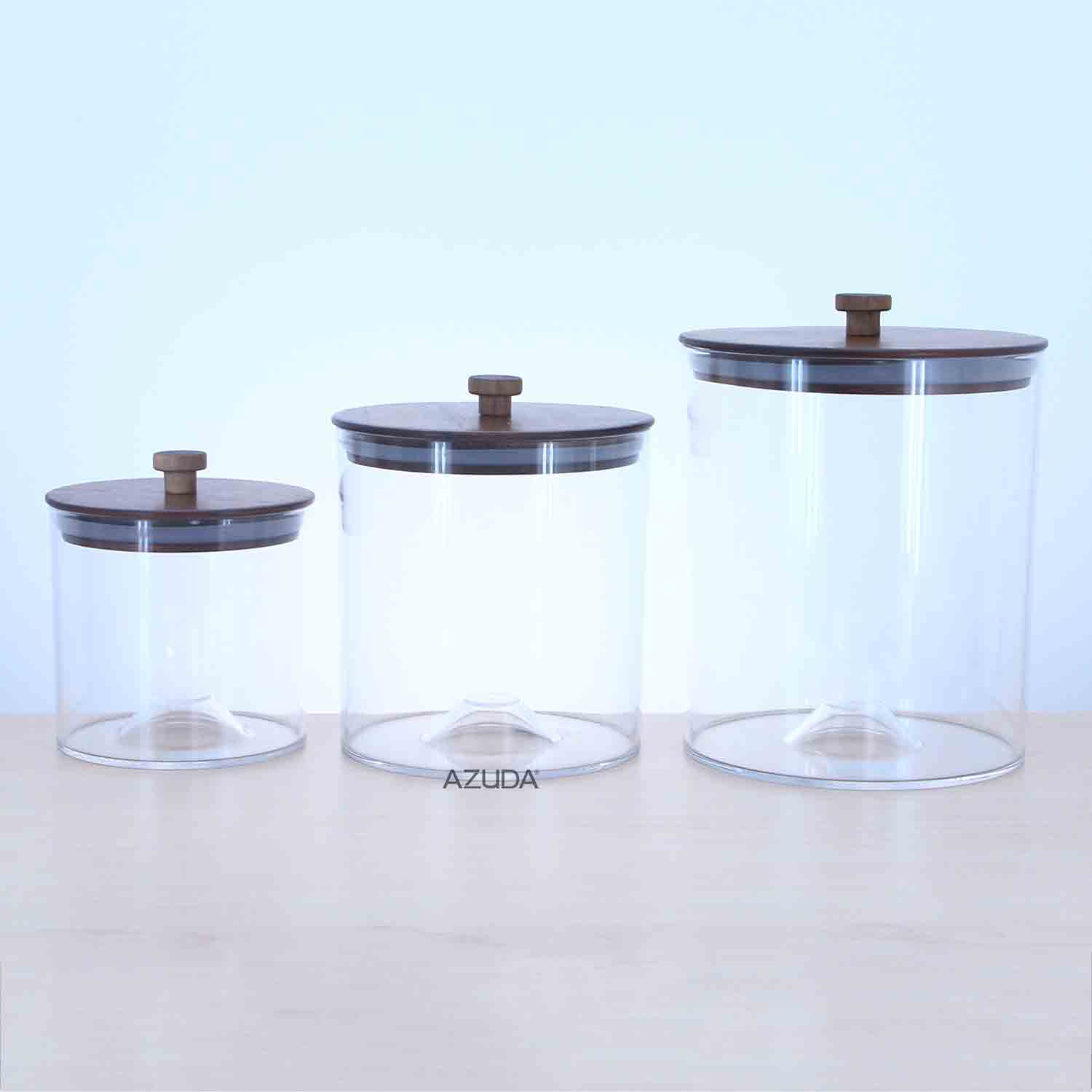 SET OF 3 Clear Acrylic Storage Canister W/Acacia Lid