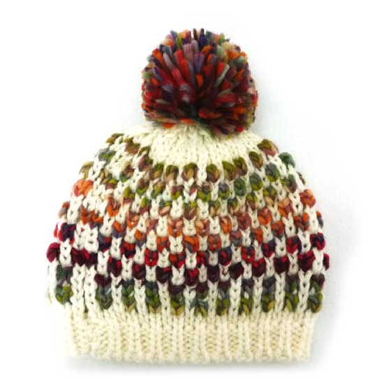 This is a colorful bobble hat with a fashionable and attractive design. It is made of 100% acrylic for a comfortable and warm touch. This acrylic hat is finely made with great craftsmanship and delicate details.