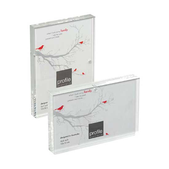 These crystal clear acrylic picture frames are held together by a magnet and invisible tape. The stylish acrylic photo frames can display photos in both portrait and landscape orientations and can take double-sided photos. The trendy acrylic photo frames are packaged in a full-color gift box.