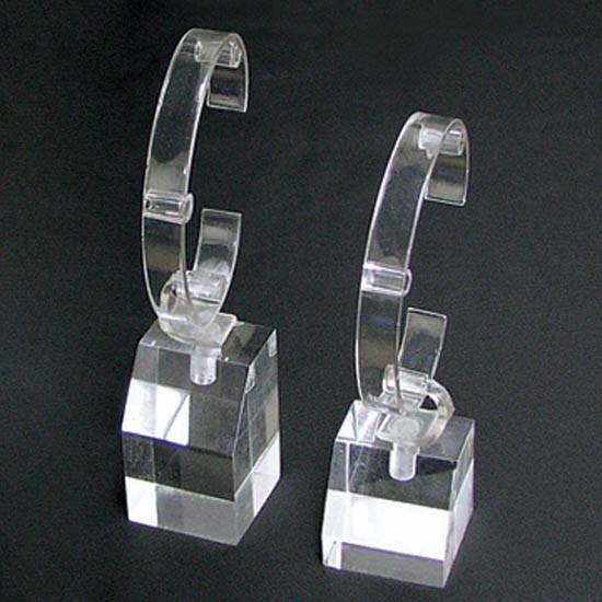 The acrylic watch holder comes with a clear acrylic faceted platform and a C-ring, which secures the watch in place. It is the favorite display unit for watches used in window display.