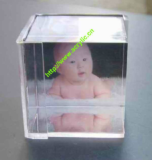 Description: This photo frame has two parts, the outer and the solid cube. The outer can be made of lustering semi-transparent acrylic sheet, which makes the photo or picture inside seem color-distinct. And when you slide the inside cube into the outer, the photo or picture can give you three-dimension feeling due to the reflect of the acrylic sheet.
