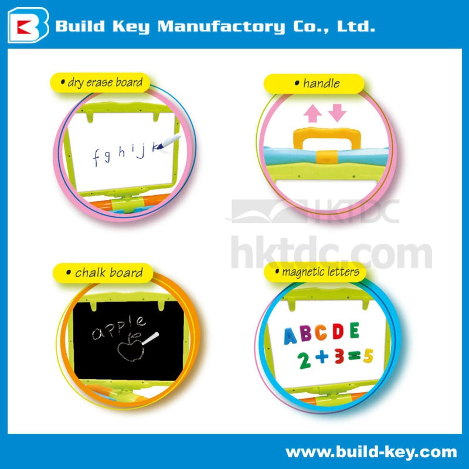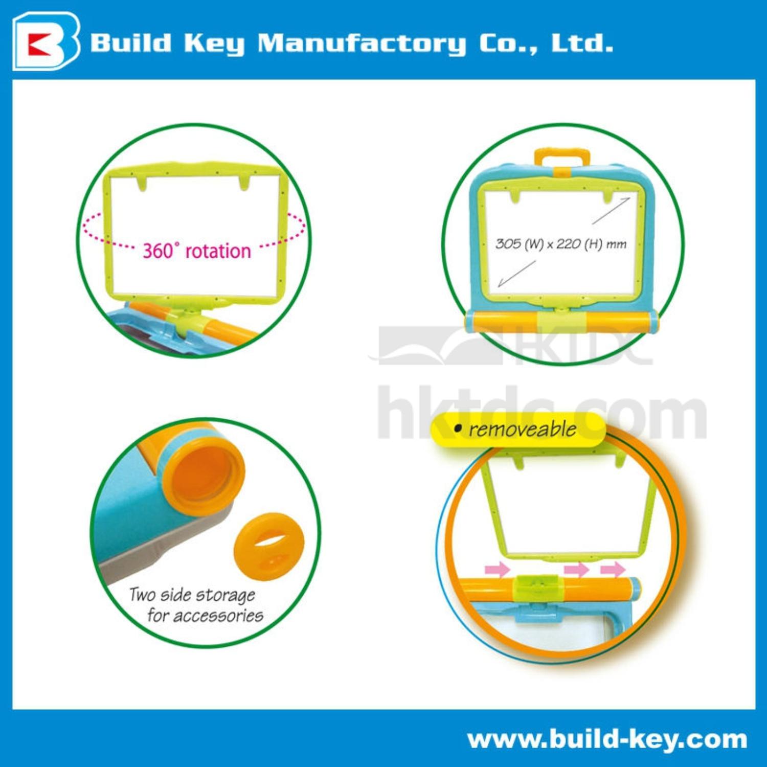 Features: ABS carrycase, detachable & 360 twisted black board / white board, 36 Magnetic Letters (1.75"), 27 Magnetic Numbers, 4 whiteboard pens, 3 chalks, 10 A4 paper and 1 double sided eraser.
