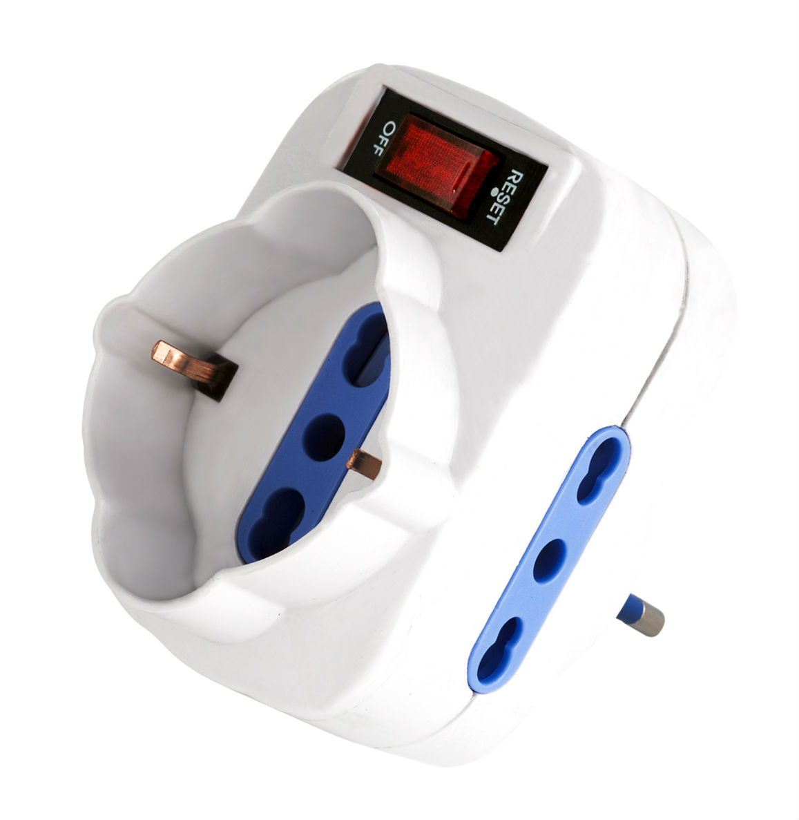 Adattatore Rotante, Spina 10a 2 Prese 2p+T 10/16a Bipasso+1 Presa Bipasso/ Schuko, Overload Protection