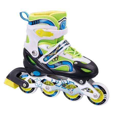 • This pair of inline skates that offers excellent performance and comfort with push button size adjustment to accommodate kids' growing feet. Equipped four robust wheels, the skates ensure exceptional reliability and durability.