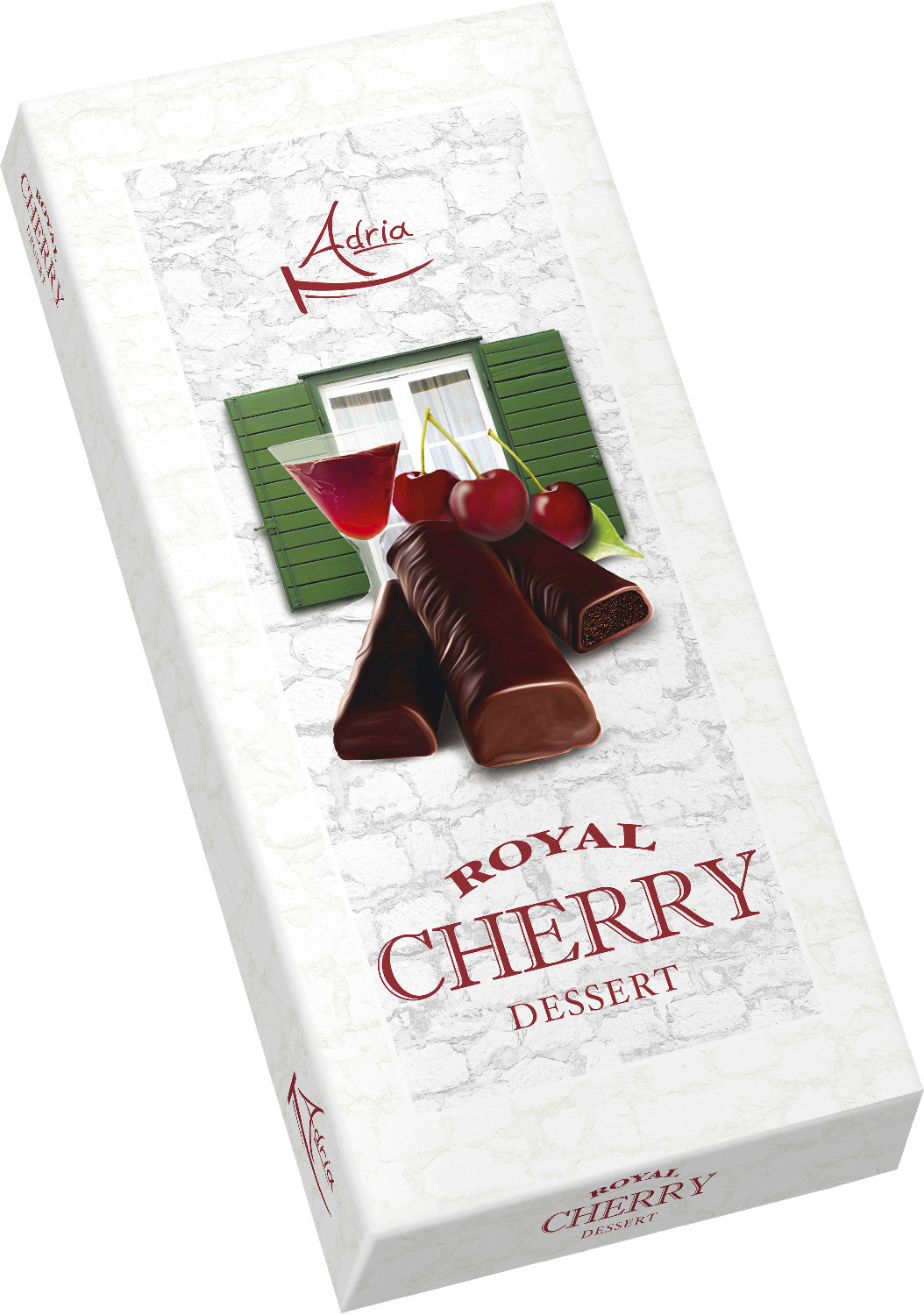 Adria Royal Cherry dessert is wafer covered dessert with cocoa topping and with cherry rum inside. We can make private label
