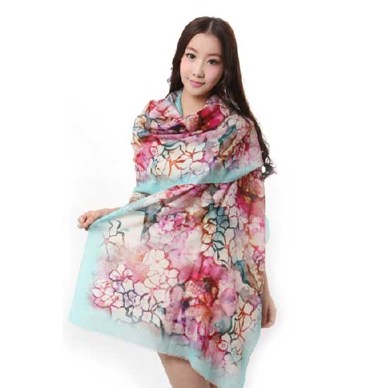 This showcased scarf is designed with attractive aeropittura patterns in bright colors to catch your attention easily. This charming scarf is made of 100% wool to ensure wearing comfort and warmth. This eye-catching scarf is great for fashionable ladies.