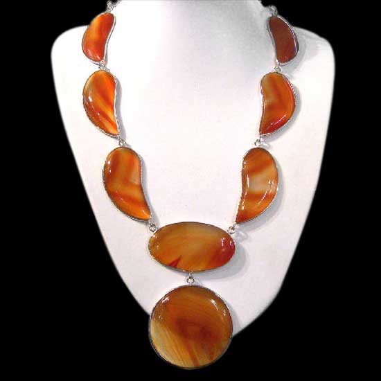 This is an agate necklace with a deluxe and neat design. It is masterfully inlaid agate stones in different shapes on a dainty silvery chain. Each agate features a shiny and smooth finish and comes with natural hues.