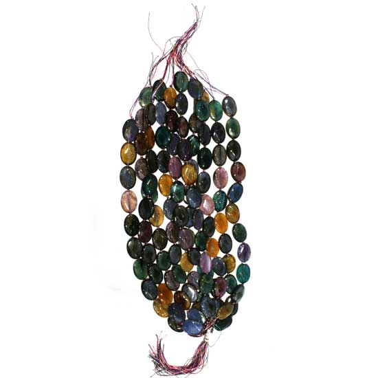The presented agate strand is a chain of flat beads in assorted colors. The agate stone comes with a translucent body with a polished surface. This agate strand is ideal to complete a fashionable bracelets and necklaces.