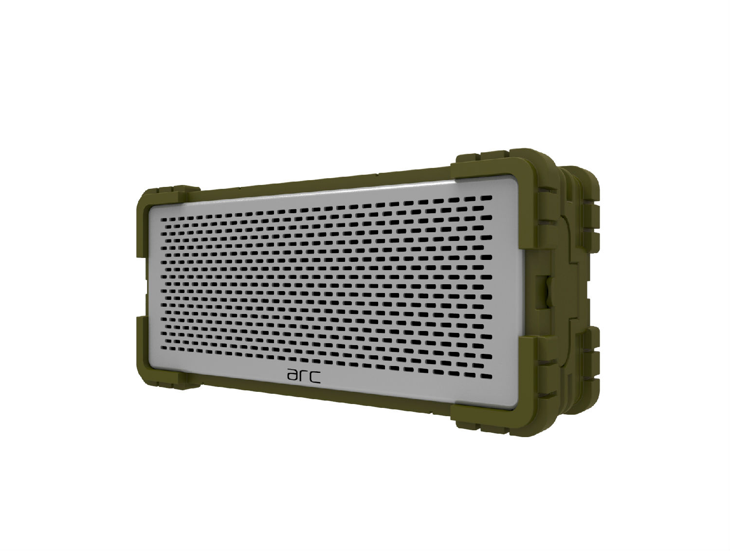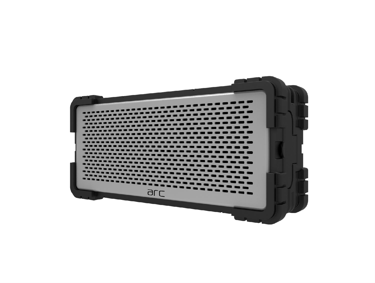 Portable wireless speaker with 8.4W powerful peak output. Ager is covered with silicon for impact absorption and water-resistant. With arc patent technology, Touch2Share, you can share your music with your friend anytime.