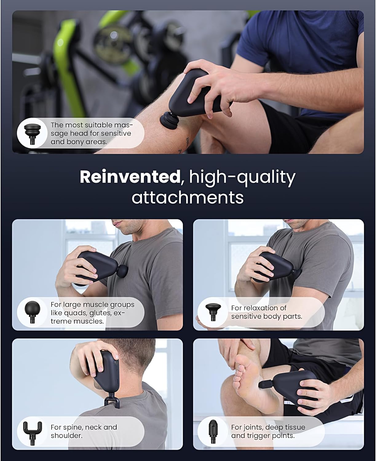 The Real Massage Gun for Real Relief: Equipped with a High-Caliber brushless motor for a potent deep tissue massage.12mm amplitude reaches your tissues deeper than most of other mini massagers. Combat everyday pain and tension with Air 2 massage gun, targeting muscle soreness and fatigue in the leg, neck, calf, knee, hand and body.