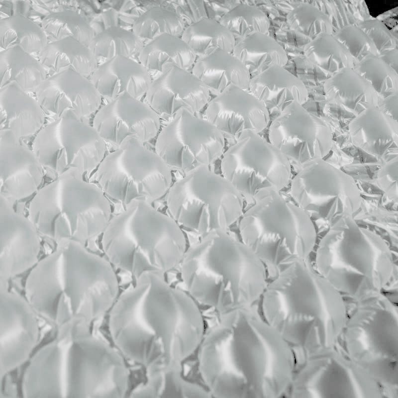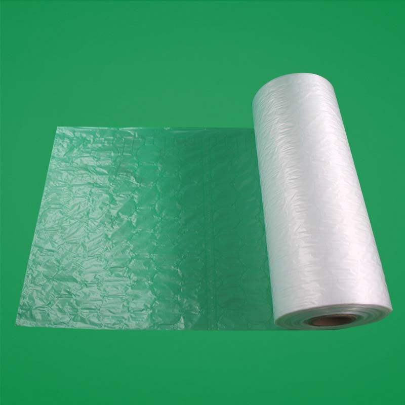 The new type of cushion bag roll is also called air cushion film, gourd bubble film and so on. It is processed with PO and PE materials. It is a transparent soft packaging material commonly used at present.Its principle is that the film contains air to form bubbles to prevent product collision, to ensure that the product is shaken to play a protective role, but also has the role of thermal insulation.
