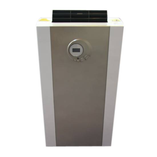 This portable air conditioner works with a power rotary compressor. Wheels are attached for high mobility. It is made of recyclable materials for environmental conservation.