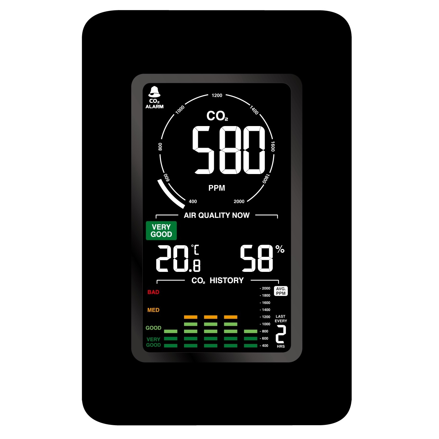 - Programmable Alert reminder on low/high CO2 levels