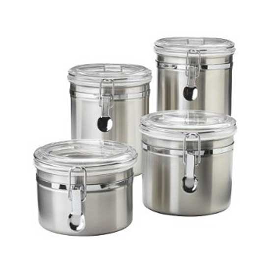 The canister set comprises 4 stainless steel canisters in different sizes. The air-tight design offers extended freshness of your food. Add sophistication and style to your kitchen with this versatile set.