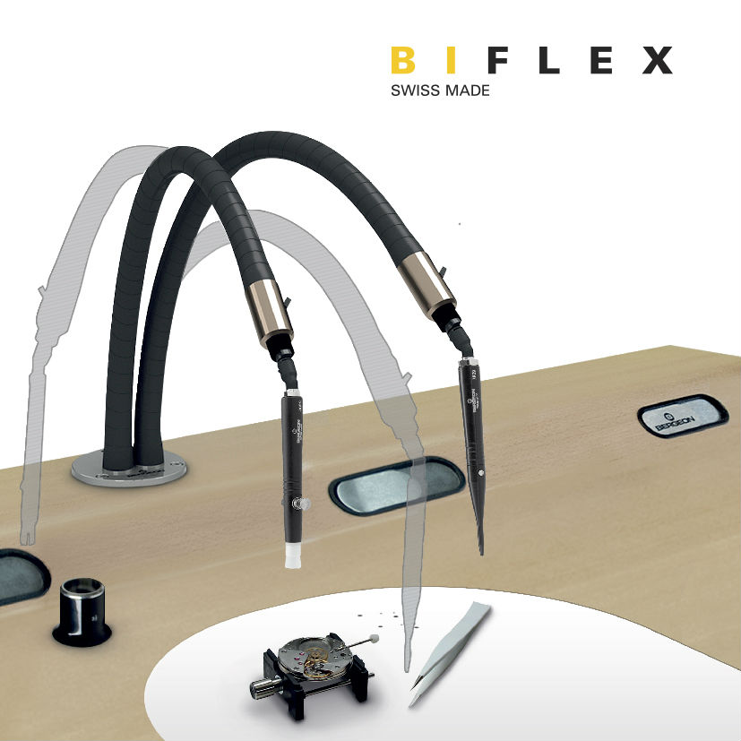 Complete Biflex system with counterweights and locking device. Including precision blower and vacuum brush.