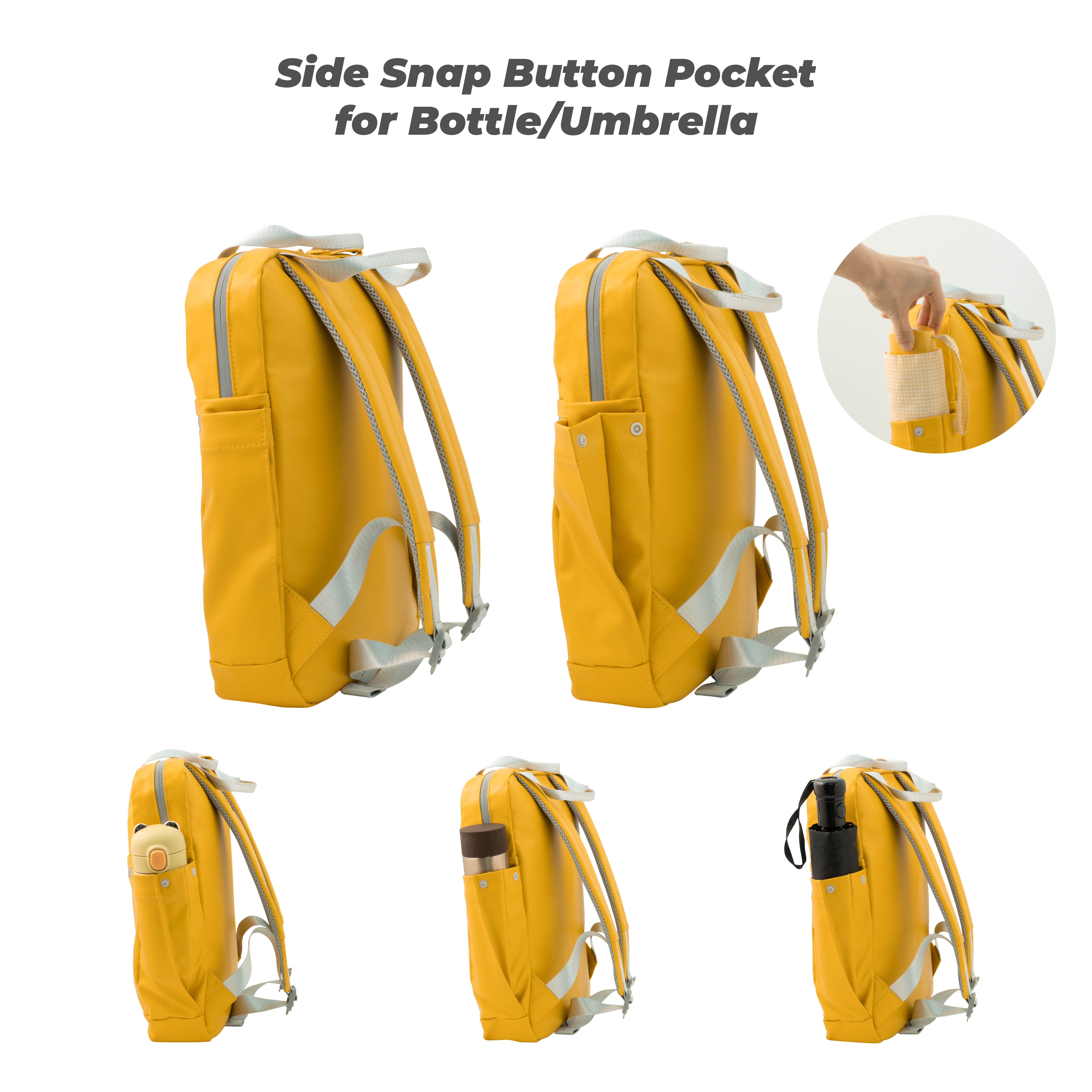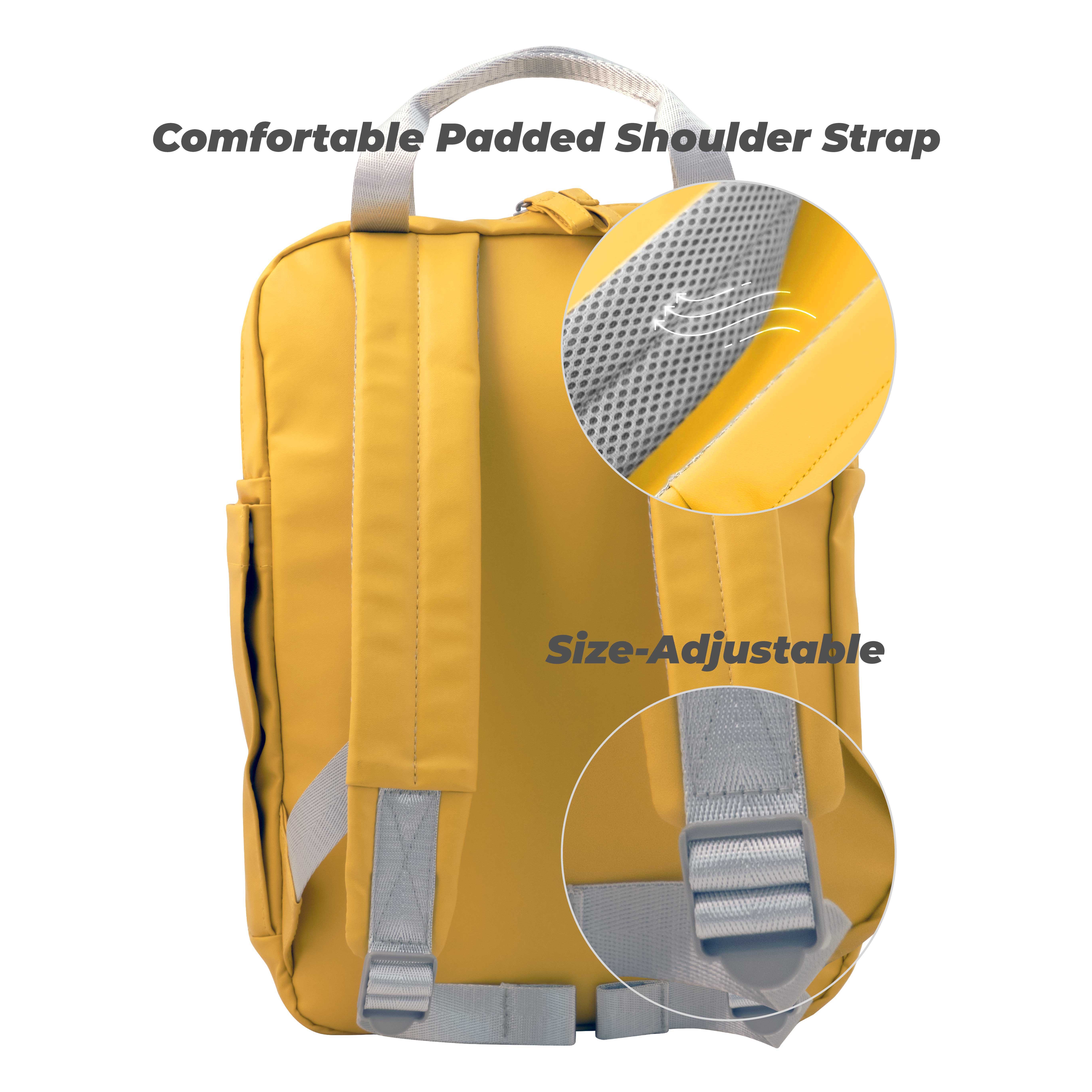 - available in various materials; vegan leather, recycled PET fabric, TPU fabric, and regular polyester fabric.