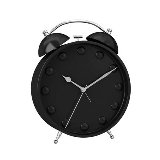 This stylish alarm clock features a black-colored construction. It comes with 2 bells on top and an embossed dot dial for a touch of uniqueness. Add this simple yet gorgeous alarm clock to your home.