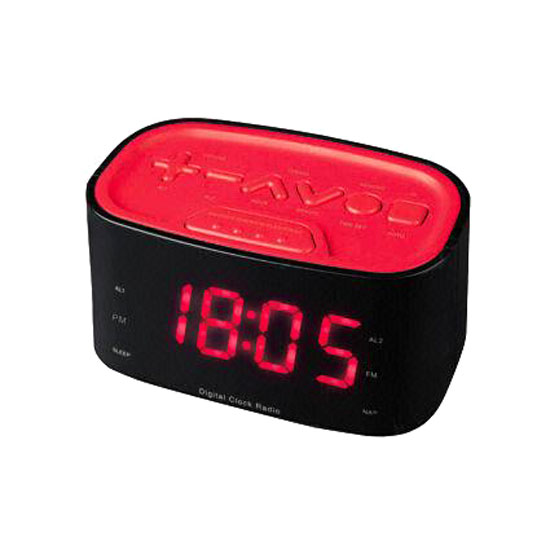 This alarm clock radio is designed in black and red for an eye-catching look. It is professionally engineered to provide reliable performance. This clock radio features a digital display for easy reading.