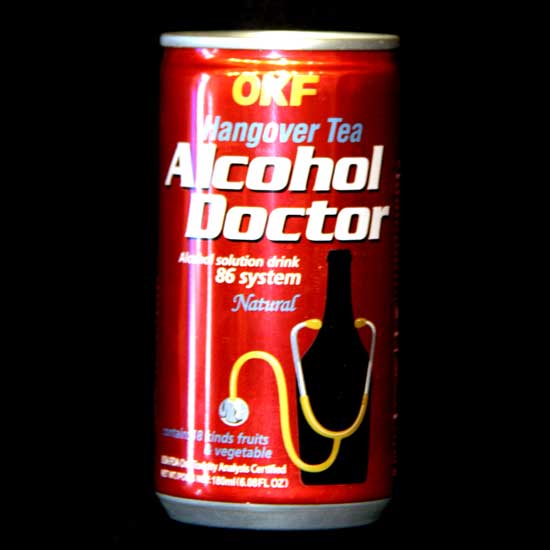 Showcased is a can of alcohol solution drink that contains natural fruit and vegetables which are good for digestion system. The refreshing aroma and flavor is the perfect solution for hangover.