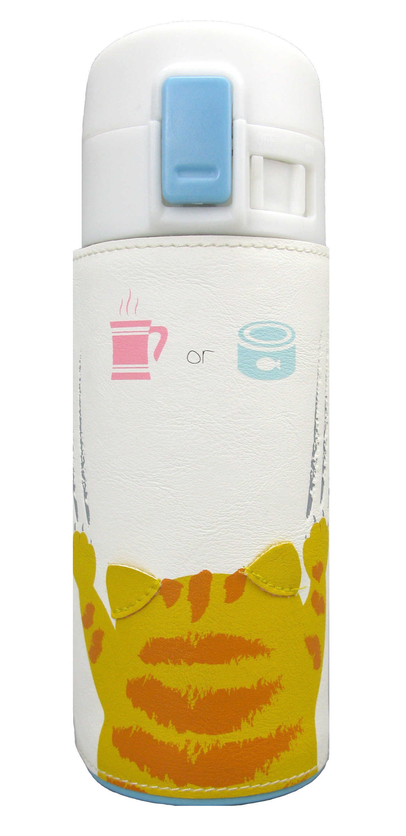 Release the jacket from the flask and you will find an adorable kitty coffee logo and coffee order symbols found on take away coffee cups.