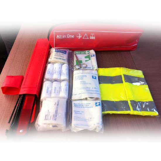 This is an all-in-one auto first aid kit filled with DIN 13164 standard contents. It also comes with an E-mark certificate warning triangle and an EN471 safety vest. This all-inclusive first aid kit is a must-have for various outdoor activities.