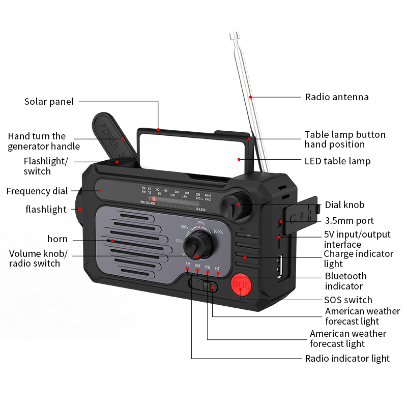All-in-One Emergency Radio Rechargeable lighting radio FM Radio Bluetooth Mini Speaker Mobile phone charger Power Generator Ideal for Any and All Emergency Situations