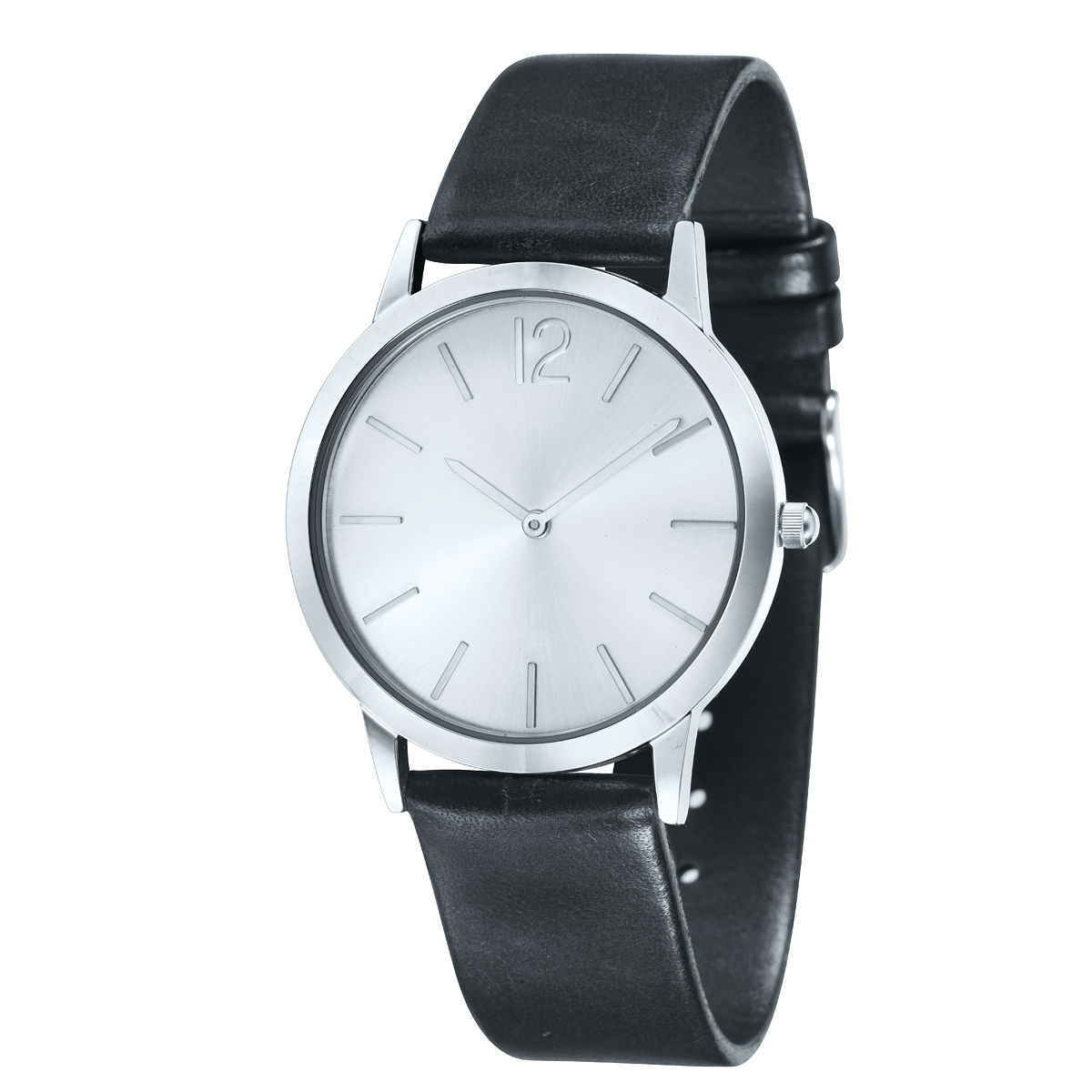 From the clean, unadorned face to the simple leather strap, this tone-on-tone fashion watch showcases simplicity at its finest. This minimalist analogue has a round dial with Arabic numeral and plain baton hour markers. Practical and accurate, this timepiece houses a 3-hand Japanese movement for precision timekeeping. This decent watch is water-resistant and made of durable alloy, making it a robust accessory that promises a long-term, stable performance.