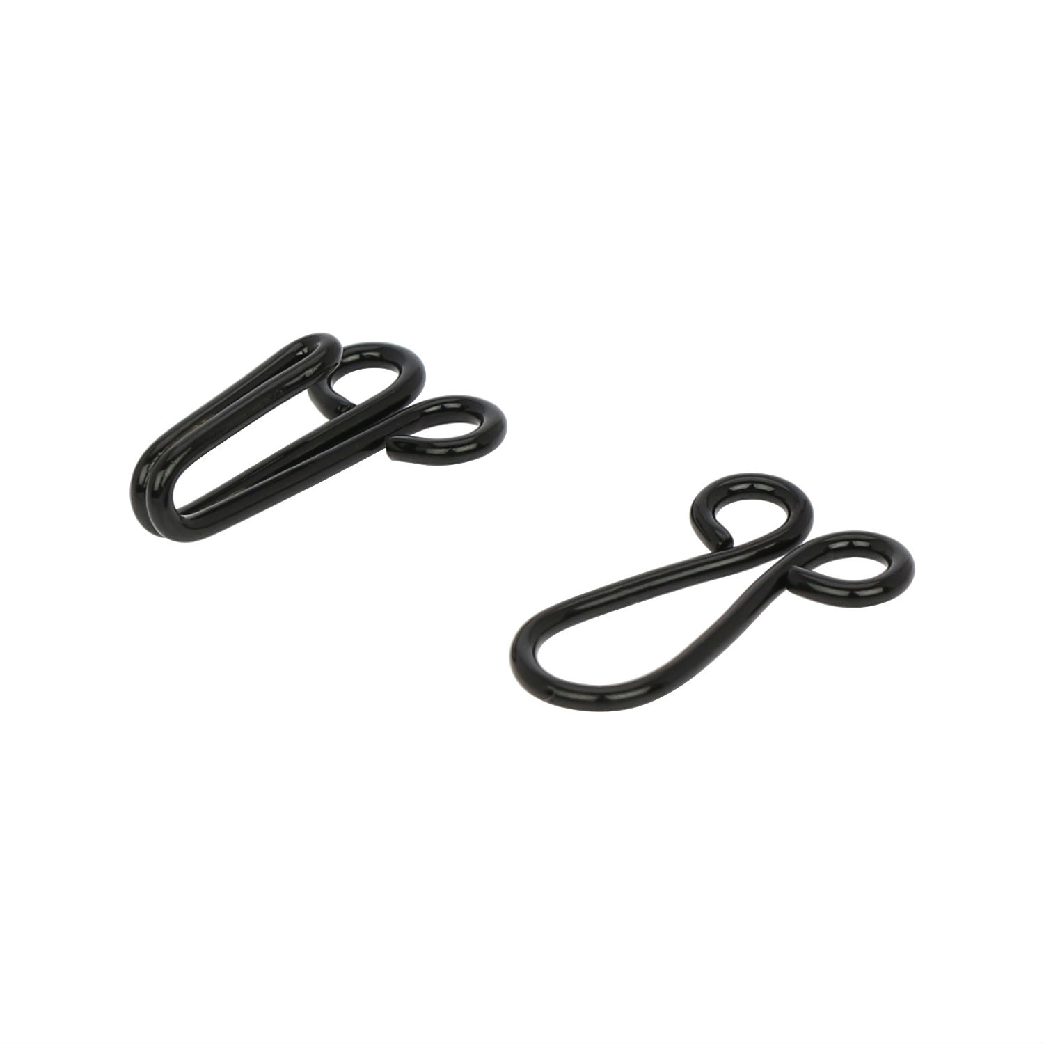 This set of alloy fastener is plated with a dark-shaded surface to resist rusting. The hook and eye are crafted with a slim silhouette, which lay flat on the fabric to provide a hidden and secure hold to fasten the pants, skirts, jackets, and any craft project that needs a closure.