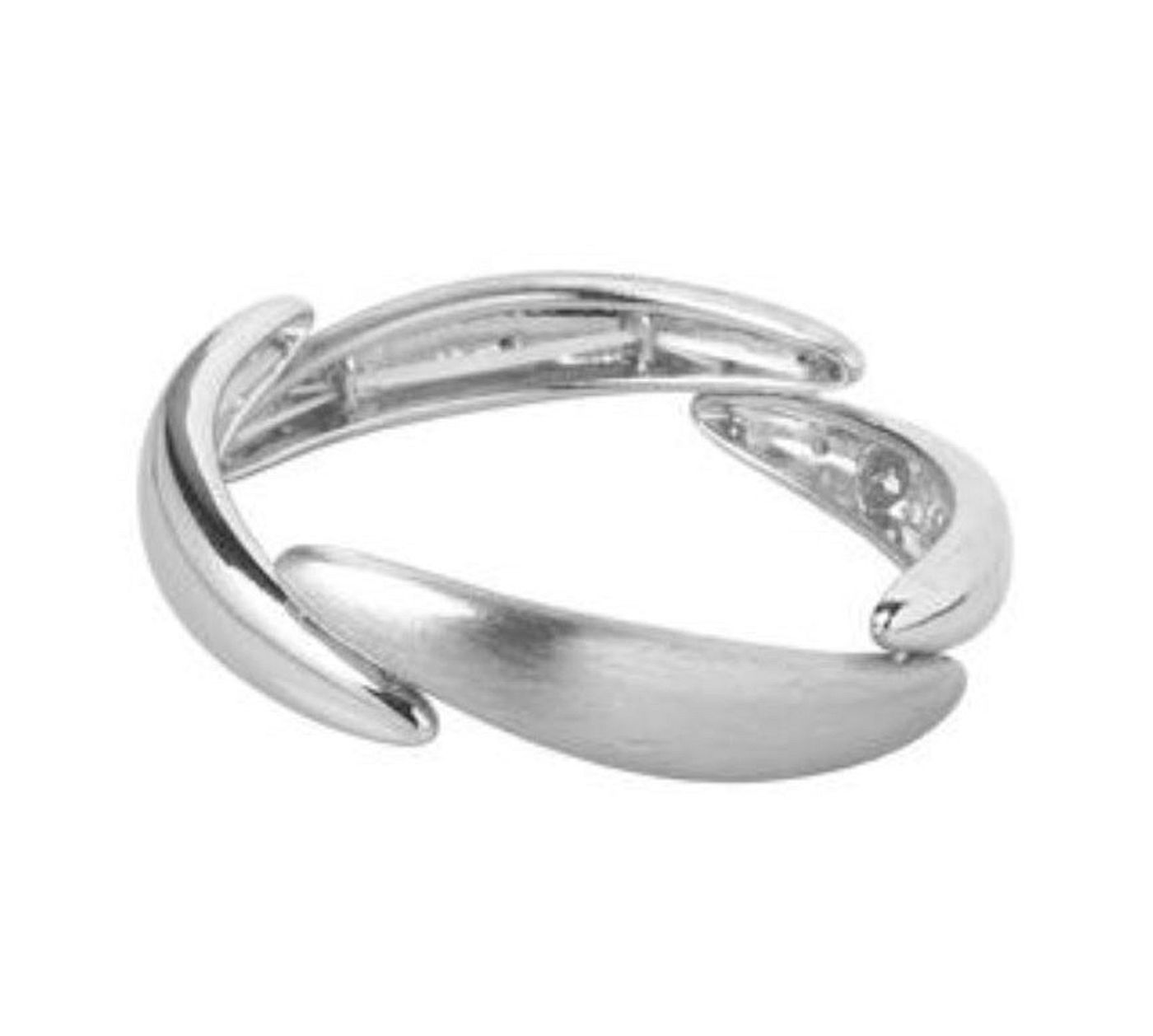 As shown is a high-fashion silver plated bangle with alloy materials.