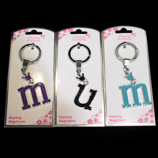 These alphabet key rings are decorative by English alphabets. Each key ring is further embellished by a small crown-shaped pendant. They make unique personalized key rings.
