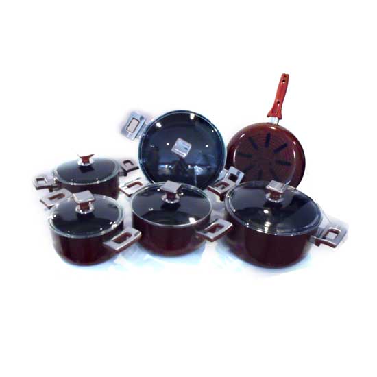 Prepare a feast for your family and friends with the showcased cookware set. Made of aluminium, the set is a durable addition to any kitchen. The items come with a special design, as the knob on the lid is square-shaped.