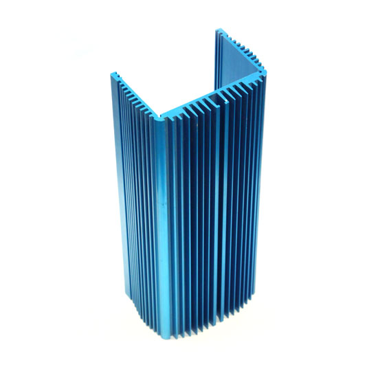 The heat sink touts durable aluminum construction with a blue anodized surface. The heat sink transfers thermal energy from a higher temperature to a lower temperature fluid medium. It offers an ideal way to ensure the safety and prolong the lifespans of electronics.