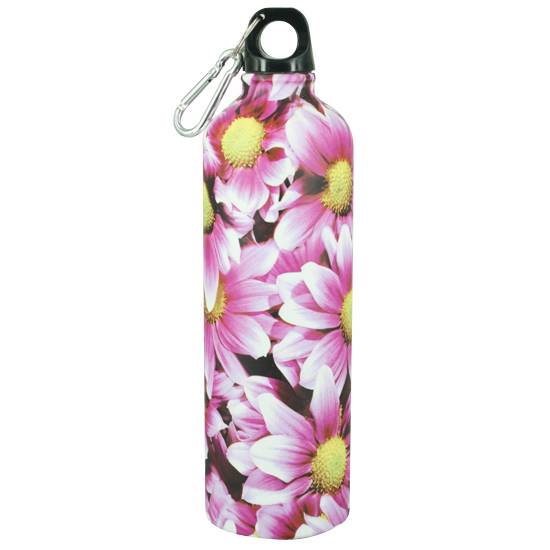 As shown is a sports bottle made of 100% quality aluminum. With 750ml in capacity, this bottle is capable of keeping a large volume of boiling water and cold drinks hot and cool respectively for a long period of time. Its high quality inner coating allows ones to drink safely.