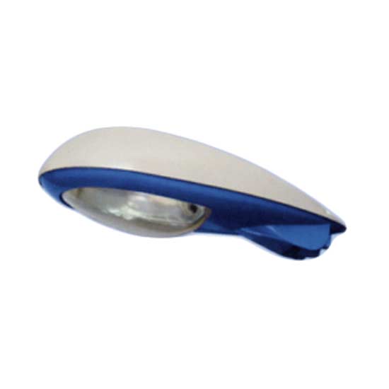 This street lamp features a contemporary design in white and blue. The die-cast aluminum body comes with a toughened glass cover. The overload protecting device helps avoid light strikes. This stylish street lamp emits intense light to ensure road safety at night.