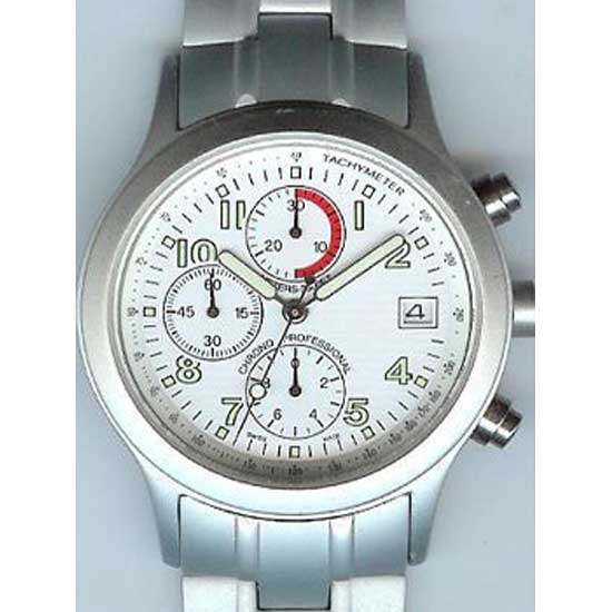 Displayed is a stylish wrist watch that boasts a solid aluminum construction. This classy watch is designed with a tachymeter on the watch dial. This fine watch is also equipped with chronograph function.
