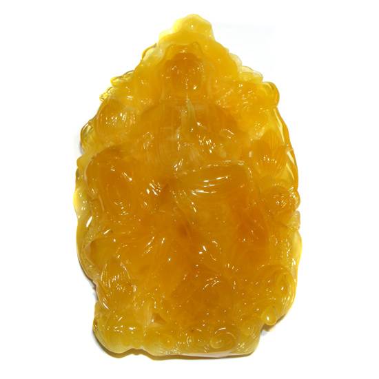 This is a decoration featured with the carving of a sitting Buddha on the whole piece. There are also flower and wave carving around the Buddha to give a vivid appearance.
