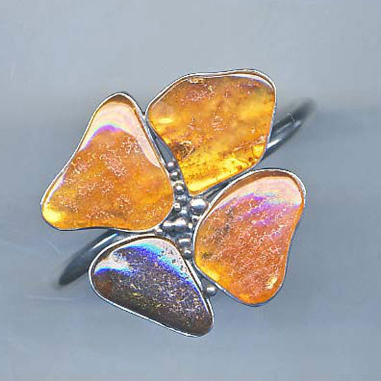 This is a piece of amber jewelry with a chic and beautiful design. It comes with a clover-shaped embellishment which is inlaid with amber stones as its leaves. This jewelry piece surely is a great accessory for your trendy outfit.