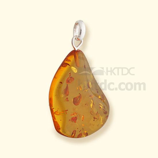 This stylish pendant is fitted with a natural Baltic amber. The exquisite amber shows a charming brown color. It is a great addition to your jewelry collection.